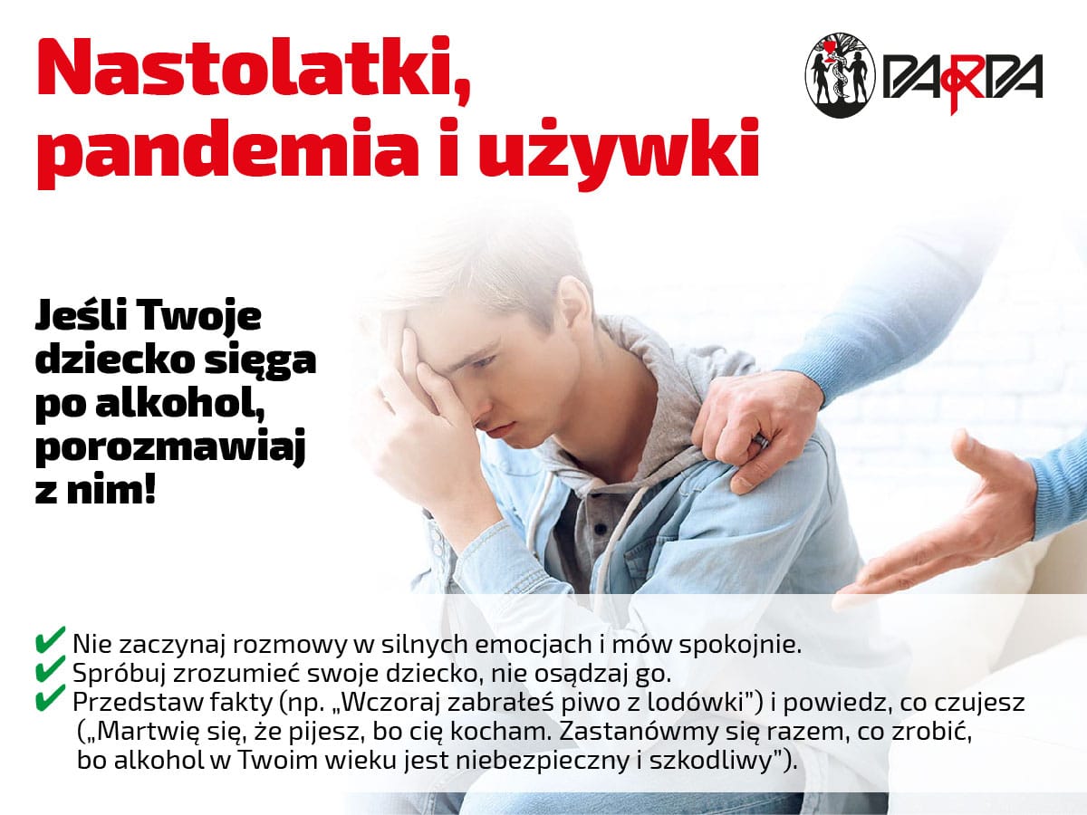 Państwowa Agencja Rozwiązywania Problemów Alkoholowych zwraca uwagę, że dzieci i młodzież potrzebują teraz szczególnej uwagi. – Jeśli w czasie pandemii szkoła nie słucha tego, co mają do powiedzenia rodzice i uczniowie, jeśli dzieci są przeciążone nadmiarem zadań i nie radzą sobie z nimi, to ta sytuacja stwarza ryzyko. Uczniowie mogą zacząć sięgać po alkohol, żeby poradzić sobie z trudnymi emocjami i napięciem – uważa Katarzyna Łukowska, p.o. Dyrektor PARPA.