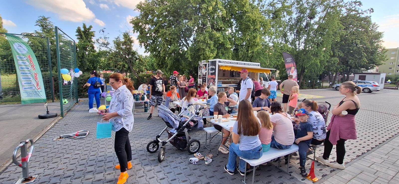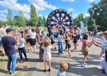 Podczas pikniku na dzieci czekały liczne atrakcje, dmuchana zjeżdżalnia, piłka XXL.