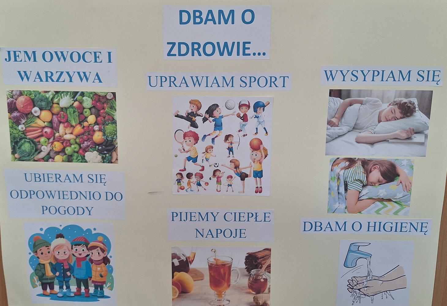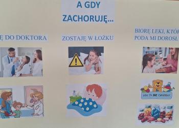 Profilaktyka zdrowia jest tematem zawsze aktualnym. W związku z tym dzieci na zajęciach profilaktyczno - edukacyjnych przypomniały sobie o podstawowych zasadach dbania o zdrowie. Dowiedziały się również jakie działania należy podjąć w razie choroby.